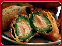 Jalapenos breaded and stuffed with crab dressing.
